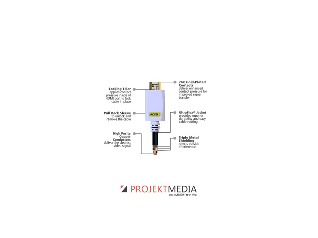Accell HDMI kabel AVGrip® standard typ locking, délka 1 m, HDMI konektor s pojistkou proti vysunutí, 24K zlacené konektory, přenosová rychlost až 6,75 Gbps (225 MHz), výrobce: Accell (USA), model: B100C