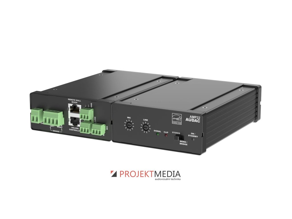 Miniaturní mixážní zesilovač 30W (RMS) s možností provozu v režimu stereo / mono, digitální topologie Class-D s vysokou účinností přes 80%, automaticky aktivovaný Standby režim při absenci audio signálu se spotřebou energie <1W, certifikace Energy Star, pasivní chlazení pro bezhlučný provoz. 1x stereofonní symetrický vstup Line (-12~+12dBV) + 1x symetrický vstup Mic (-50~-18dBV) s individuálním nastavením vstupní úrovně, 1x vstup RJ45 pro volitelný přípojný panel WP523, 1x vstup RJ45 pro volitelný externí ovladač hlasitosti VC3208, 2x LED indikace přítomnosti signálu a max. vybuzení, 1x 3stavová LED indikace napájení a pohotovostního režimu. Zkreslení THD+N <0,1%, odstup S/N >95dB, přeslech <-75dB (@1kHz), ochrana proti zkratu / přetížení / přehřátí / ss napětí na výstupu. Napájení 24VDC, součástí dodávky spínaný zdroj 100~240VAC / 47~63Hz. Možnost instalace na plochu nebo do 19" racku pomocí volitelných montážních úchytů MBS1xx. Rozměry (ŠxVxH) 108x44x165mm, hmotnost 0,8kg včetně zdroje.