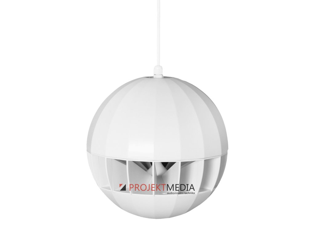 Reproduktor závěsný 8", 20/10/5W @ 100V, citlivost 92dB @ 1W/1m, max. SPL 103dB @ 1m, frekvenční rozsah 80Hz-18kHz @ ±3dB. Tělo ABS plast, 3,5m kabel s integrovaným ocelovým lankem. Průměr 254mm, hmotnost 2,95kg, barva bílá vč. kabelu.