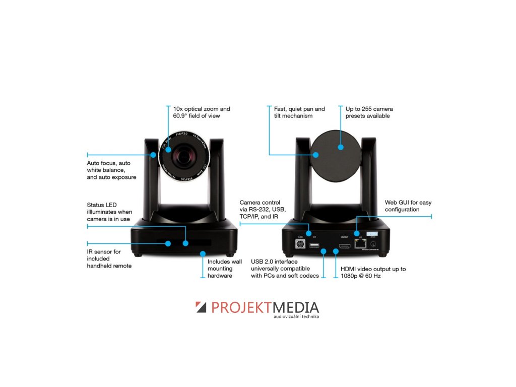 Atlona AT-HDVS-CAM-HDMI je PTZ kamera navržená pro použití při video konferenčních hovorech a dalších aplikacích jako jsou přednášky a dálková studia. HDMI výstup, stejně jako rozhraní USB 2.0 pro video a ovládání kamery. Simultánní video výstup je dostupný na obou rozhraních. Přes USB, HDVS-CAM-HDMI bezproblémová integrace s řadou Omega™ pro kompletní, automatizovaný konferenční systém, který zahrnuje přenos AV a USB. HDMI výstup je ideální pro video konference, přednášky nebo PC vybaveným pro snímaní videa. HDVS-CAM-HDMI poskytuje bezkonkurenční, profesionální obraz s rozlišením až do 1080p 60 Hz přes HDMI a 1080p 30 Hz pro USB 2.0 a dále také rychlé a přesné automatické zaostřování a rychlý a přesto tichý mechanismus pro otáčení a naklápění. Tato PTZ kamera je ideální pro velké zasedací místnosti, učebny, školicí místnosti a mnoho dalších aplikací. HDVS-CAM-HDMI je dostupná v bílé a černé variantě.
