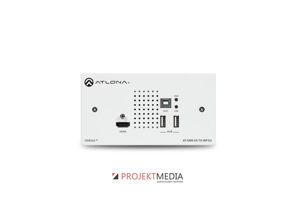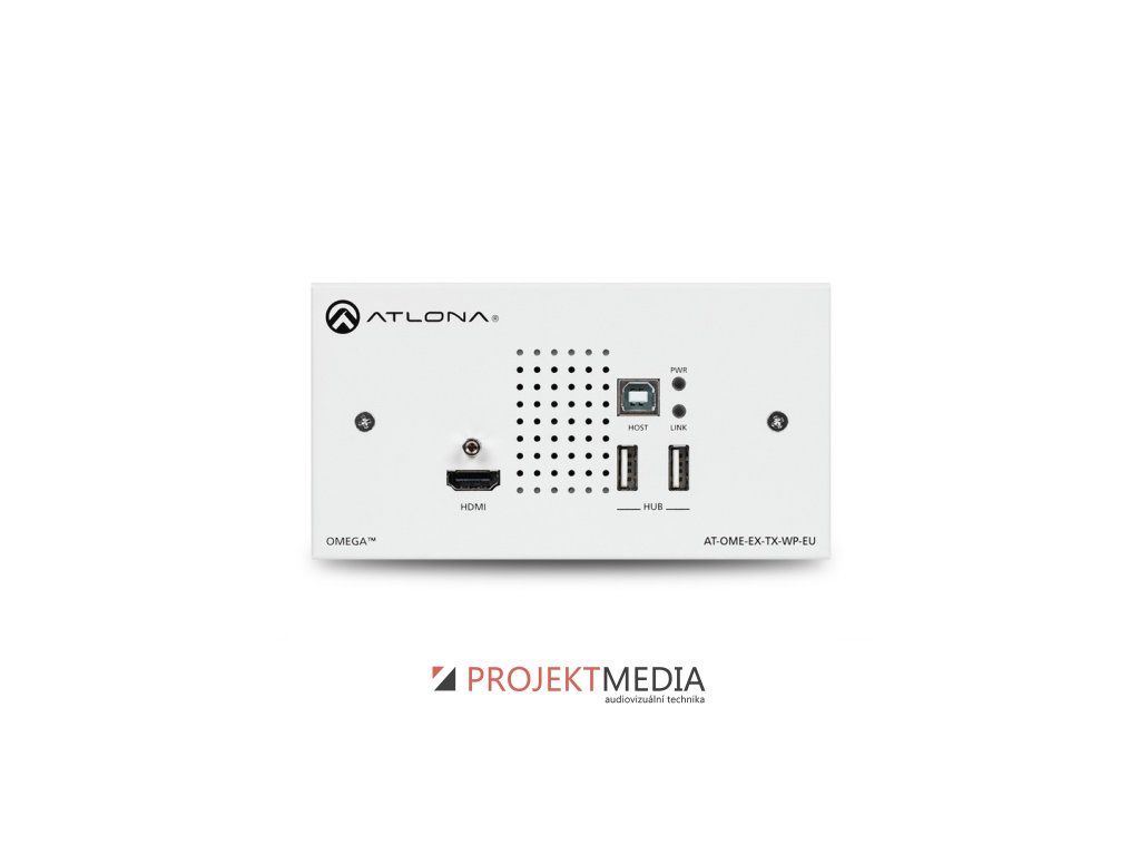 Atlona AT-OME-EX-TX-WP-E je two gang wallplate pro EU a HDBaseT vysílač pro HDMI, Ethernet, napájení, ovládání a USB (USB 2.0 rozhraní a přenos až do 100 metrů), podpora 4K/UHD 60 Hz 4:2:0, HDCP 2.2, výrobce: Atlona, model: AT-OME-EX-TX-WP-E