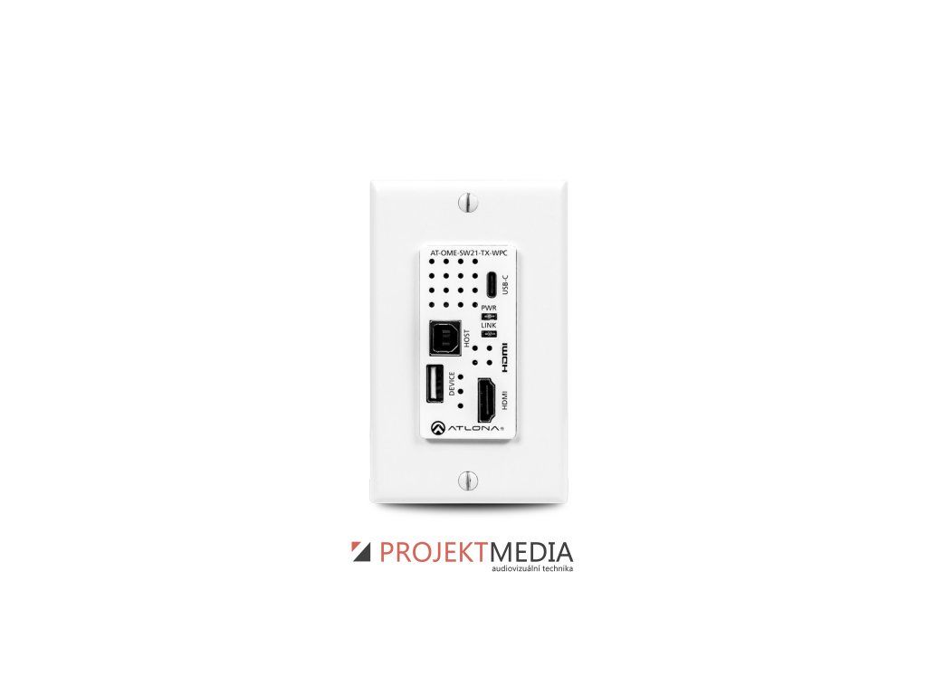 Atlona AT-OME-SW21-TX-WPC je instalační panel (wallplate) 2x1 přepínač a HDBaseT vysílač s HDMI a USB-C vstupy. Podpora 4K/60Hz 4:2:0, audio embedding, řízení a USB 2.0 až na 100 m. US wallplate, vzdálené HDBaseT napájení a podpora HDCP 2.2. Výrobce: Atlona, model: AT-OME-SW21-TX-WPC