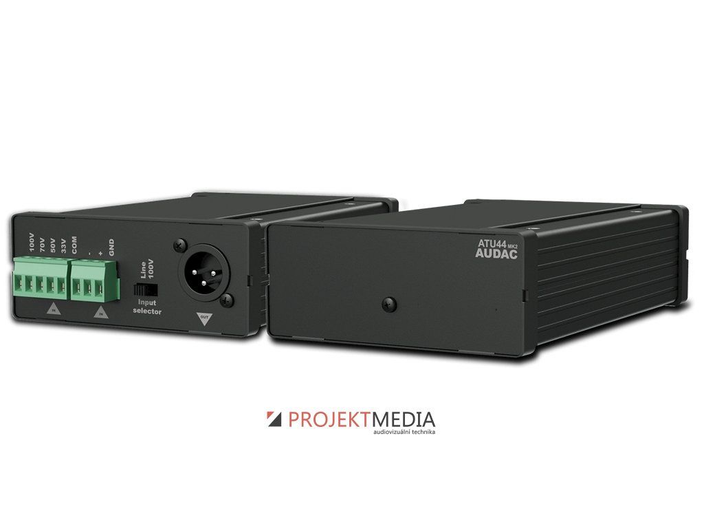 Převodník úrovně audio signálu s galvanickým oddělením. Vstupy 100/70/50/33V + symetrický linkový (Euroblock), výstup symetrický linkový (XLR-M). Kompaktní provedení kompatibilní s instalačními úchyty Audac S-Box.