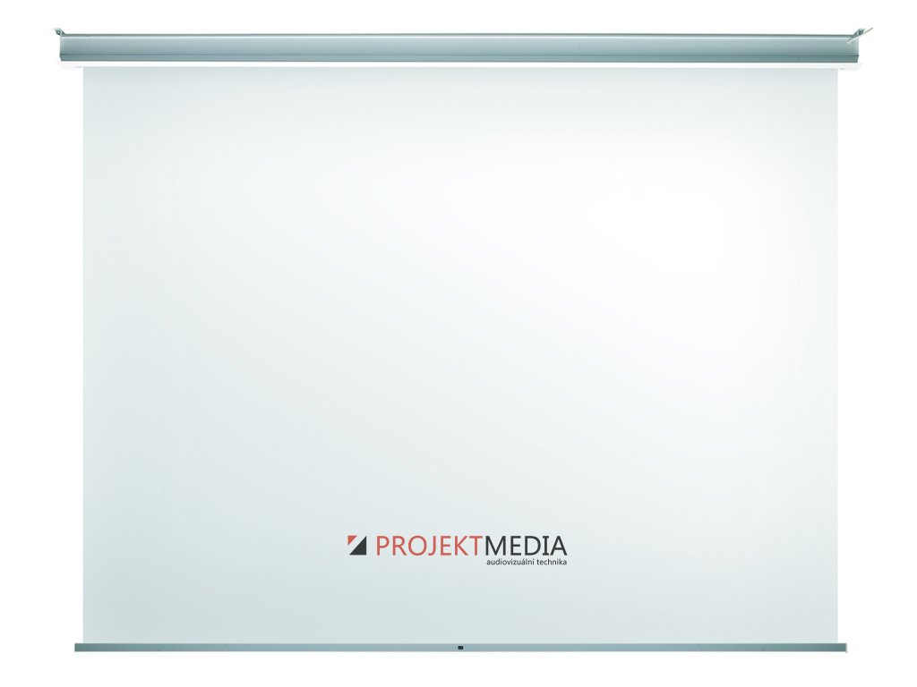 Kvalitní podhledové projekční plátno řady BlueLabel s pohonnou jednotkou Somfy, v provedení White bez černého rámečeku okolo obrazu. Tubus plátna z eloxovaného hliníku bíle lakovaný.