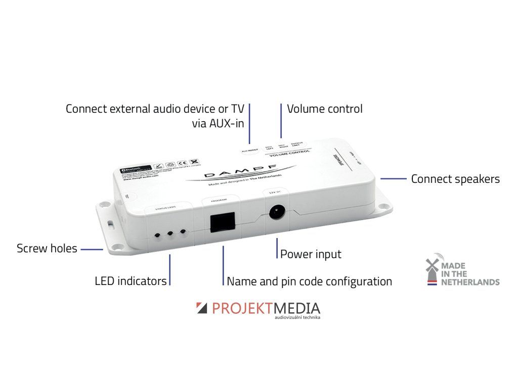 Bluetooth Hub RA001 Bluetooth zesilovač 2x20W, AUX IN/OUT, vč. zdroje DAMPF