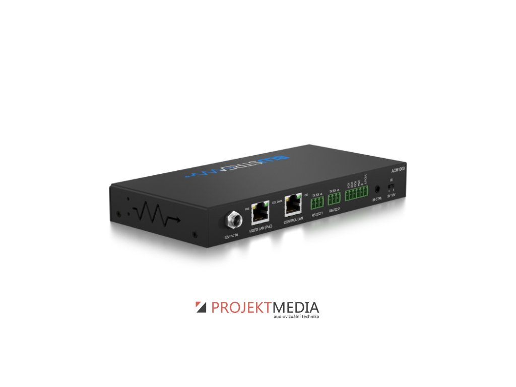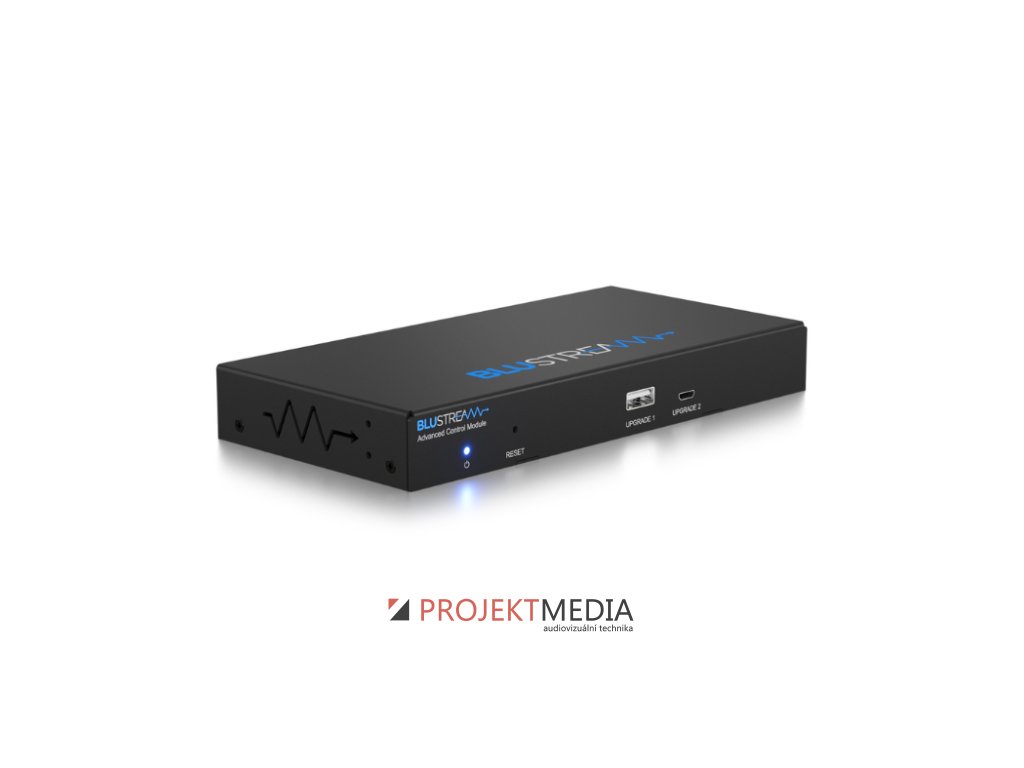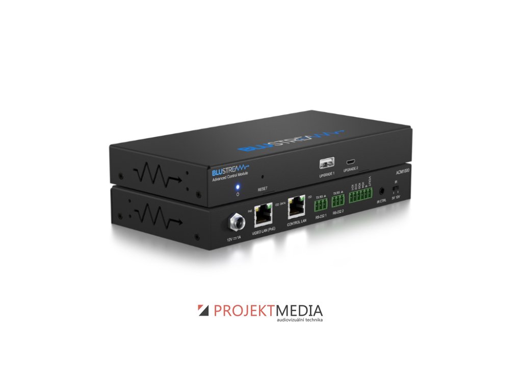 ACM1000 od Blustream je výkonný řídicí modul pro systémy AV over IP s intuitivním webovým rozhraním a ovládáním „drag & drop“. Umožňuje nezávislé směrování video, audio, IR, RS-232, USB/KVM a CEC signálů. Nová generace s čtyřjádrovým procesorem přináší plánování 24/7, makra, předvolby, seskupování displejů a pokročilé ovládání zdrojů. Nabízí 2× LAN (1× PoE), RS-232, IR a GPIO pro snadnou integraci a automatizaci AV systému. Výrobce: Blustream, model: ACM1000