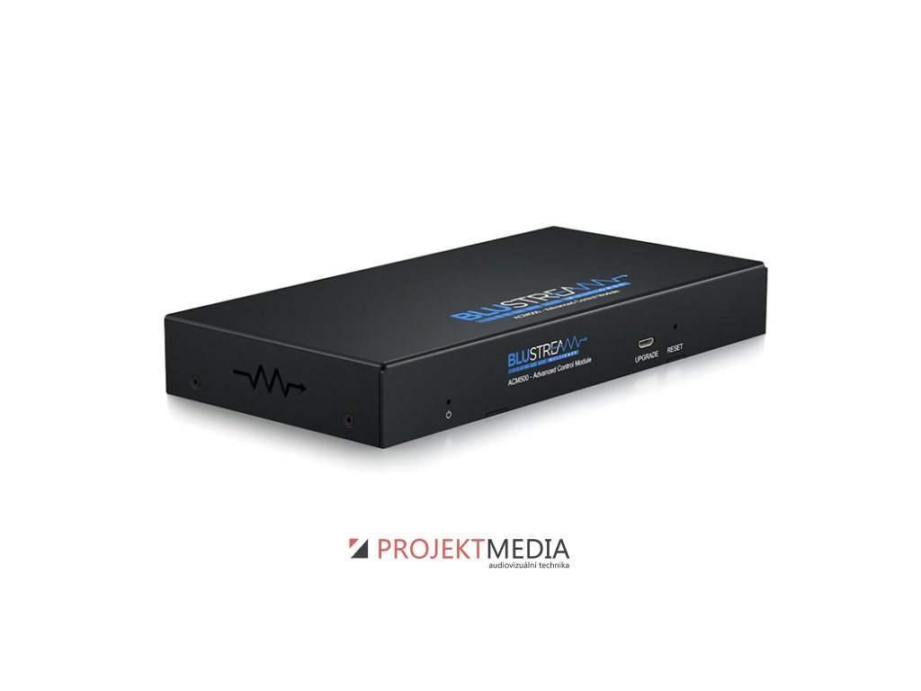 Řídicí modul Blustream ACM500 umožňuje řízení třetích stran SDVoE 10GbE Multicast systému s použitím TCP/IP, RS-232 a IR. Obsahuje modul webového rozhraní pro řízení a konfiguraci multicast systému a vlastnost 'drag and drop' výběr zdroje s náhledem a nezávislé směrování IR, RS-232, USB / KVM, Audio a Video. výrobce: Blustream, model: ACM500