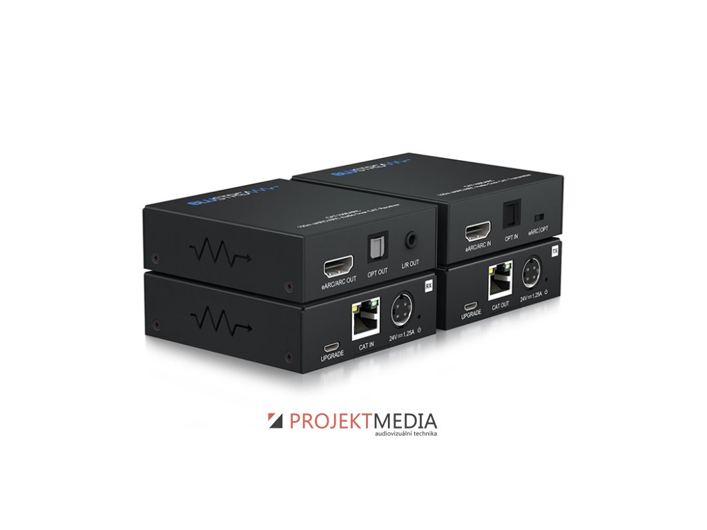 Extender, který přenáší HDMI eARC/ARC nebo optické digitální audio signály přes jeden CAT kabel až do vzdálenosti 200 metrů (eARC/ARC signály až do 100m).