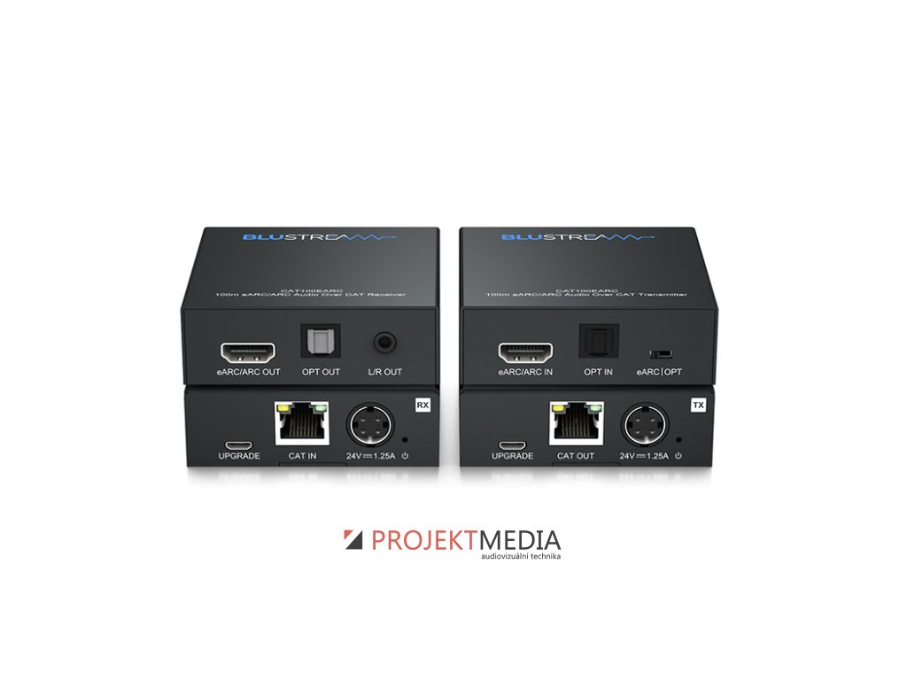 Blustream CAT100EARC je extender, který přenáší HDMI eARC/ARC nebo optické digitální audio signály přes jeden CAT kabel až do vzdálenosti 200 m (eARC/ARC signály až do 100 m), zabudovaný DAC, podporuje CEC, výrobce: Blustream, model: CAT100EARC