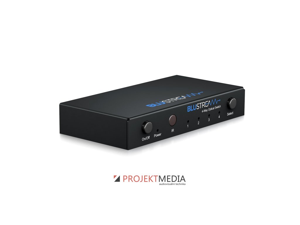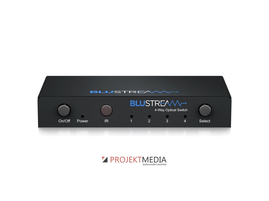 Blustream OPT41AU je přepínač optických audio vstupů se zabudovaným DAC, vstupy: 4x optický (Toslink), výstupy: 1x optický (Toslink), 1x RCA (SPDIF), 1x analogové audio L/R, výrobce: Blustream, model: OPT41AU