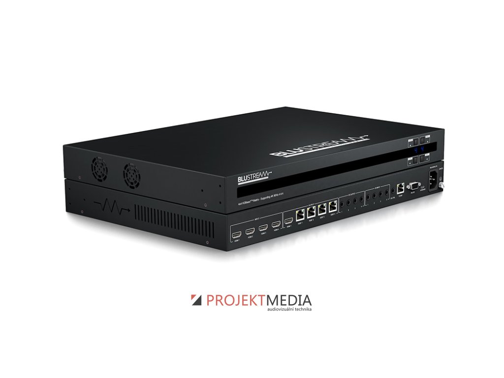 Blustream C44CS-KIT je 4x4 HDBaseT™ maticový přepínač, podpora 4K 60Hz 4:4:4 až do 40m, přenáší HDMI 1080p video až do 70m, výrobce: Blustream, model: C44CS-KIT