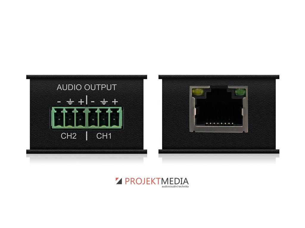 Blustream DA11D převodník z digitálního audio signálu Dante® na symetrický nebo nesymetrický dvoukanálový analogový zvuk.