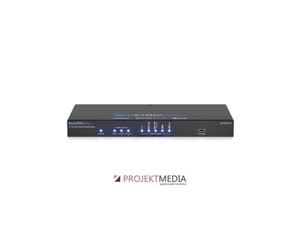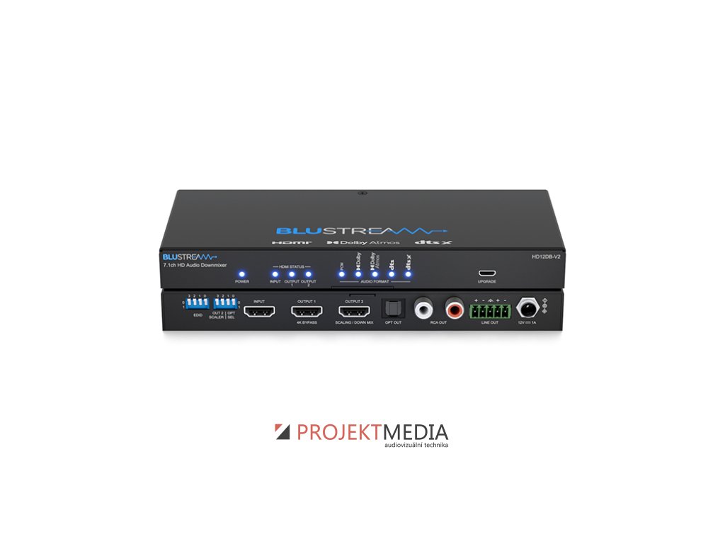 Blustream HD12DB-V2 byl navržen pro převod a downmixování embedovaného 7.1kanálového zvuku Dolby Audio nebo DTS Audio v rámci HDMI signálu na stereo 2 kanálový signál dostupný na HDMI, optických a analogových audio výstupech. HD12DB-V2 je vybaven HDMI výstupem se smyčkou, která předává původní video a vícekanálový embedovaný audio signál do kompatibilního zařízení a druhým HDMI výstupem s konverzí videa 4K 60Hz 4:4:4 až na 1080p. Zajišťuje tedy to, že 4K UHD video a vícekanálový zvuk lze distribuovat v systému s více místnostmi, kde je směs 2kanálových a 7.1kanálových zón s požadavky na více výstupních rozlišení.