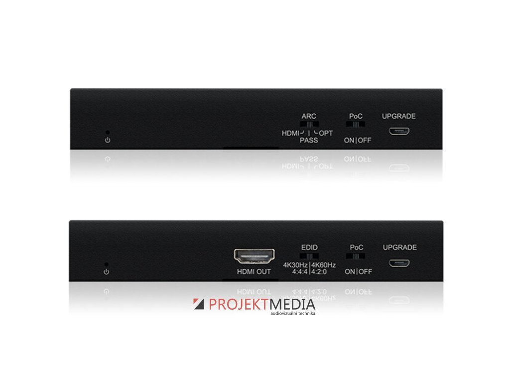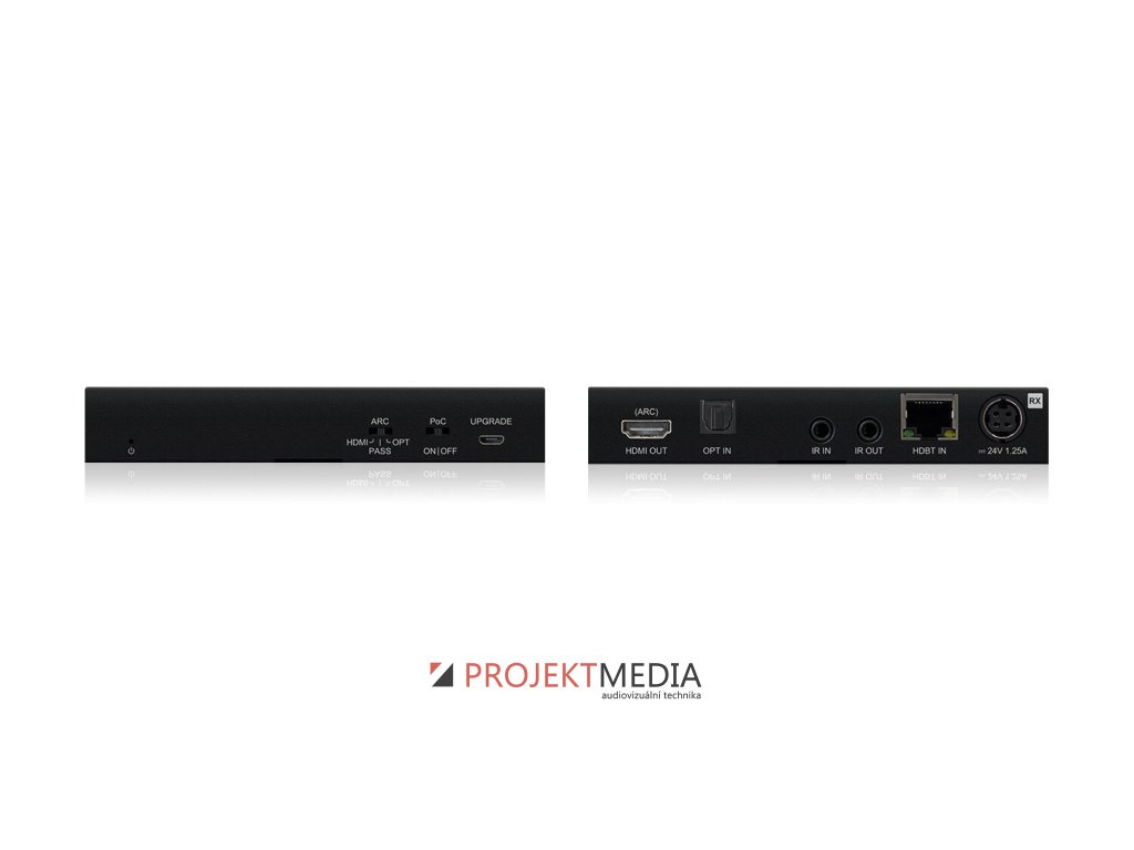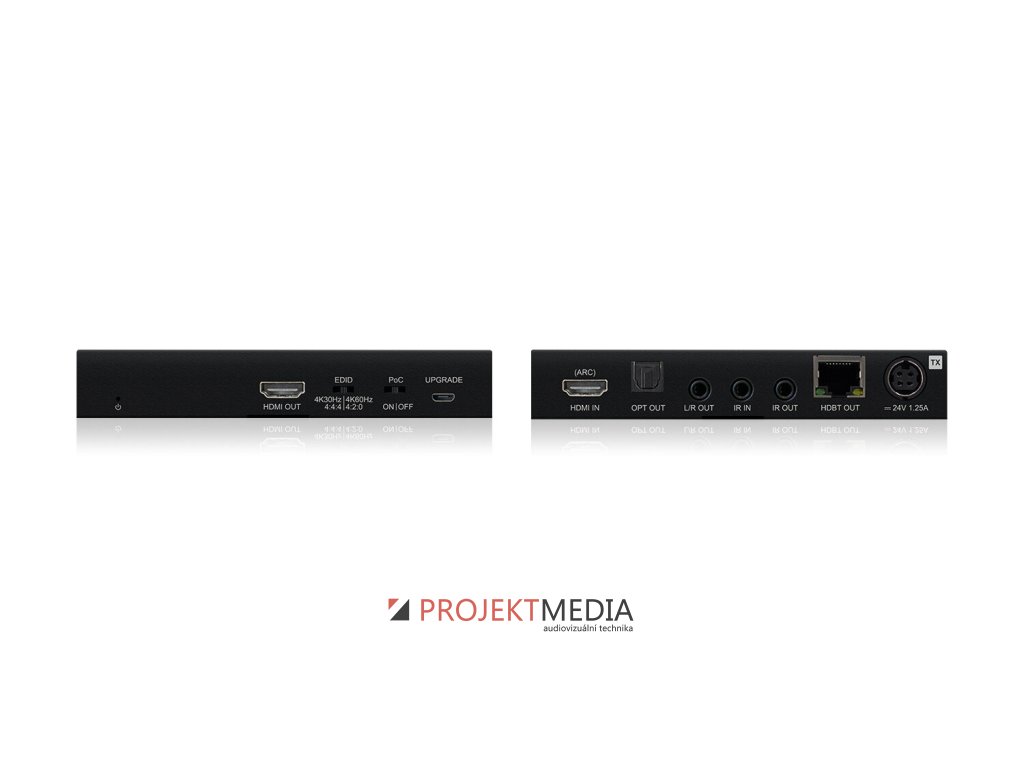 HEX70ARC-KIT 4K HDBaseT™ extender kit, který přenáší HDMI a ARC signál, zpětný audio kanál přes Toslink, obousměrné IR a obousměrné PoC až do délky 70 metrů (4K UHD rozlišení až do vzdálenosti 40 m).