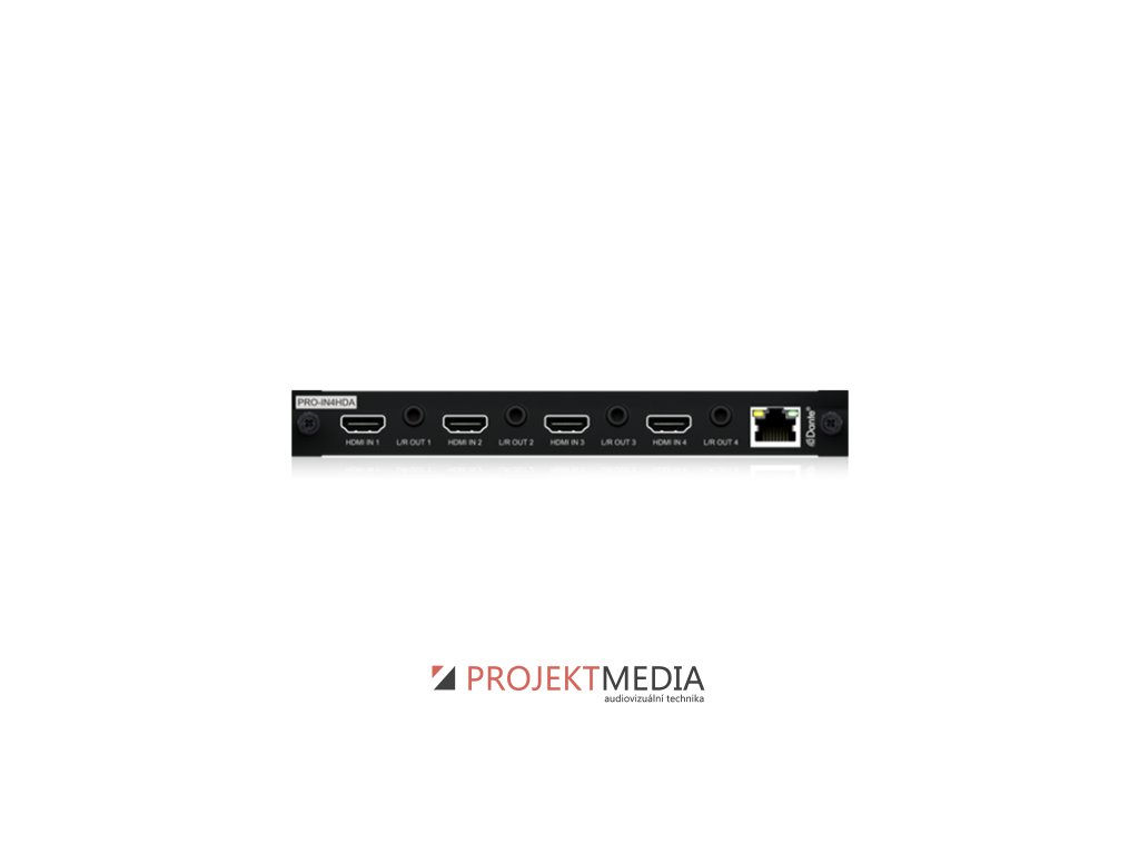 HDMI 2.0 vstupní karta, která podporuje 4K 60Hz 4:4:4 s Dante audio vstupem, Dante audio výstupem a analogovým audio breakoutem. PRO-IN4HDA obsahuje 4x HDMI 2.0 vstupy, které podporují 4K 60Hz 4:4:4 a mohou být nezávisle směrovány do jakéhokoli HDMI/HDBaseT výstupu. Každý HDMI vstup obsahuje nezávislý 2 kanálový Dante audio breakout, 2 kanálový analogový audio breakout a 4x 2 kanálové Dante audio vstupy, které umožňují audio embedování do HDMI zdroje.
