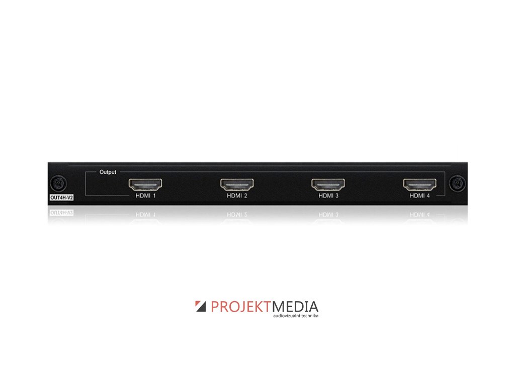 Blustream PRO-OUT4H-V2 je HDMI 2.0 modul se 4 x HDMI 2.0 výstupy. Podporuje 4K 60Hz 4:4:4 (18 Gb/s) s HDCP 2.2, což umožňuje distribuci vstupů na čtyři nezávislé displeje a "quick release".