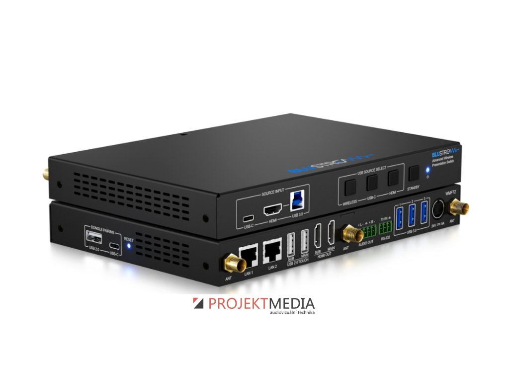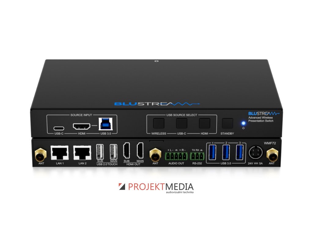 WMF72 je pokročilý 4K multiformátový prezentační přepínač s kabelovým HDMI a USB-C, AirPlay, Miracast® a Chromecast® vstupy do duálních HDMI výstupů.Výrobce: Blustream, model: WMF72