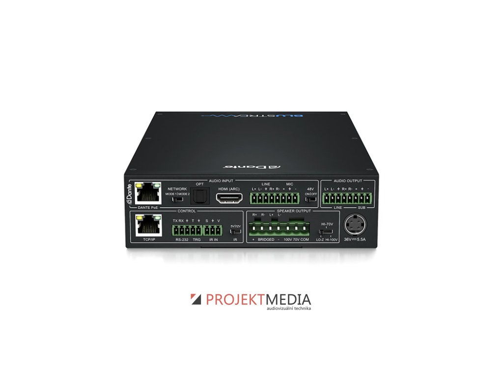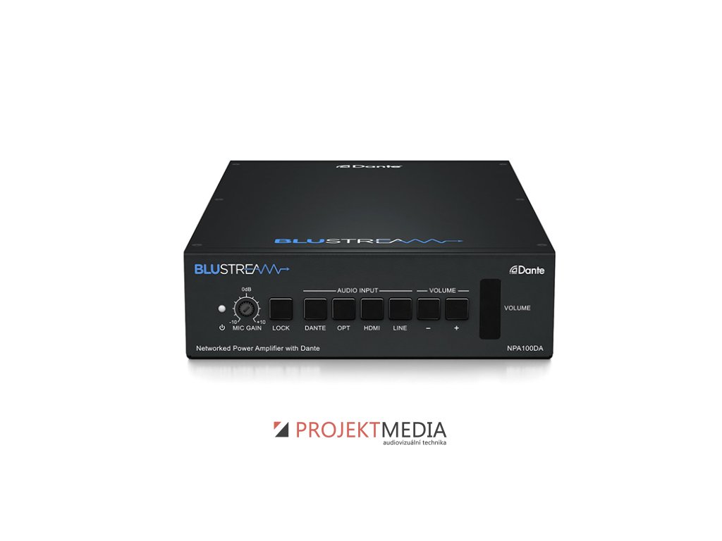 Blustream NPA100DA je síťový audio zónový zesilovač, který integruje zvuk do komerčních a residenčních AV instalací. Zasilovač má výkon 2x 50 W (1 x 100 W mono) nebo 70V / 100V, výstup LFE subwoofer, Dante audio a symetrickými / nesymetrickými audio výstupy. Výrobce: Blustream, model: NPA100DA