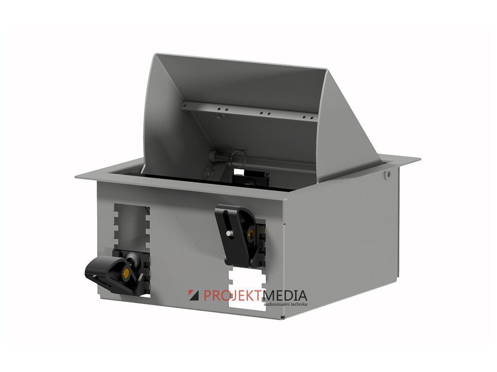 Přípojná jednotka systému CASY o celkové šířce max. 4 jednotek, provedení pro zapuštěnou instalaci do stolu / nábytku / duté příčky s tloušťkou desky v rozsahu 6-50mm, výklopný systém s možností otevření krytu do úhlu 45°. Pohodlný přívod kabelů otevřenou spodní/zadní stranou, snadné a stabilní upevnění do podkladové desky bez nutnosti přístupu vzadu. Tělo z ocelového plechu tl. 1,5mm, povrchová úprava odolný práškový lak. Rozměry (ŠxVxH) 178x198x91.5mm, instalační otvor 161x175mm, hmotnost 1,5kg, barva šedá.