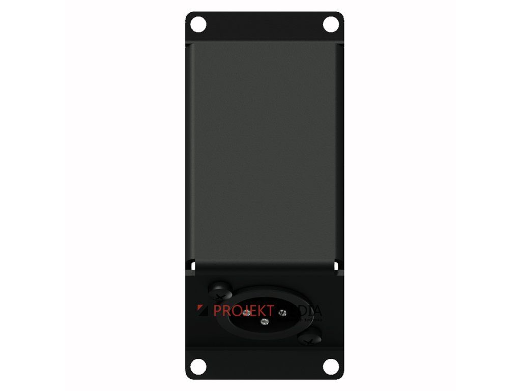 Konektorový modul systému CASY, vpředu 1x Neutrik XLR(M) s šikmým pipojením, vzadu 1x 3pin svorkovnice, šířka 1 jednotka, materiál ocel tl. 1,5mm, barva černá