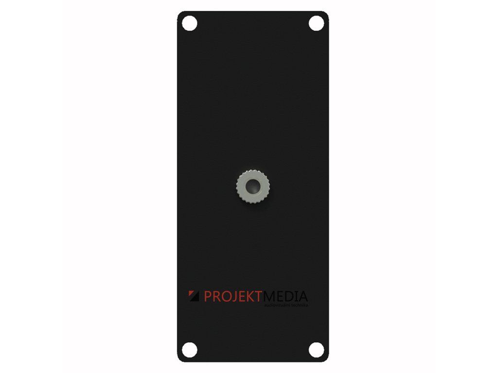 Konektorový modul systému CASY, vpředu 1x Jack 3,5mm (samice), vzadu 2x 3pin svorkovnice, šířka 1 jednotka, materiál ocel tl. 1,5mm, barva černá