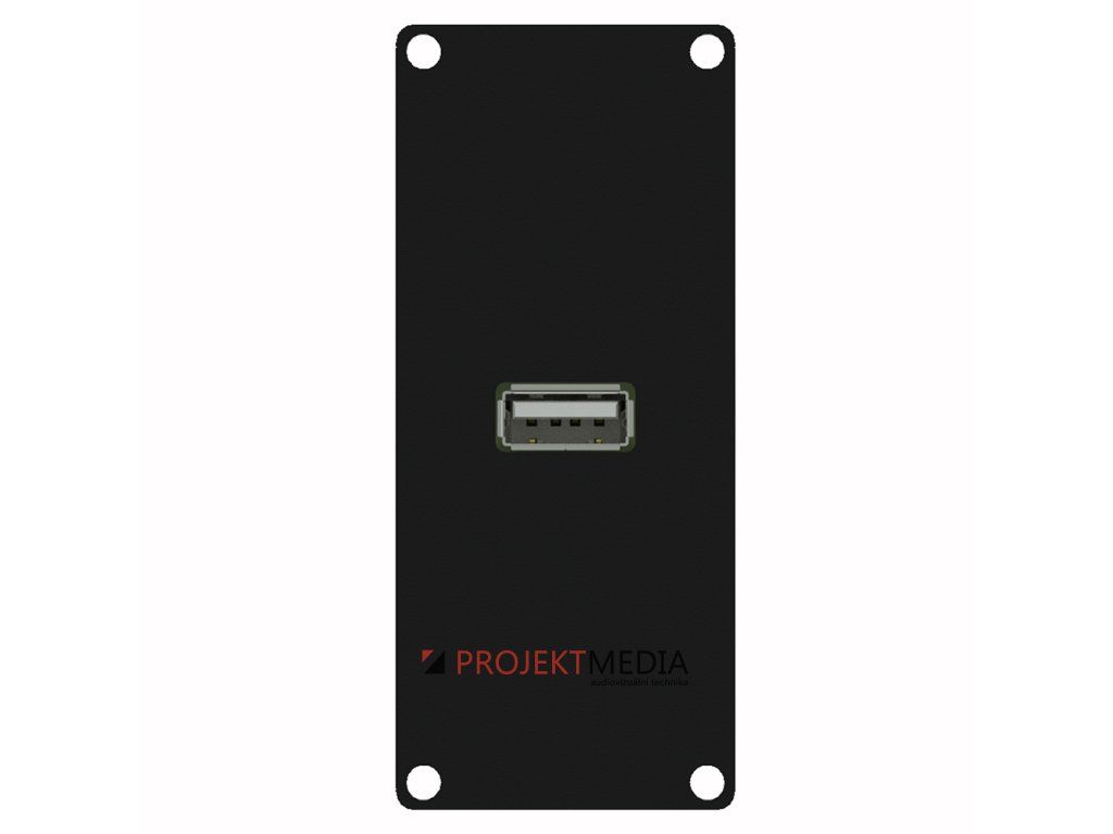 Konektorový modul systému CASY, vpředu 1x USB2.0A (samice), vzadu 1x USB2.0A (samice na kabelu), šířka 1 jednotka, materiál ocel tl. 1,5mm, barva černá
