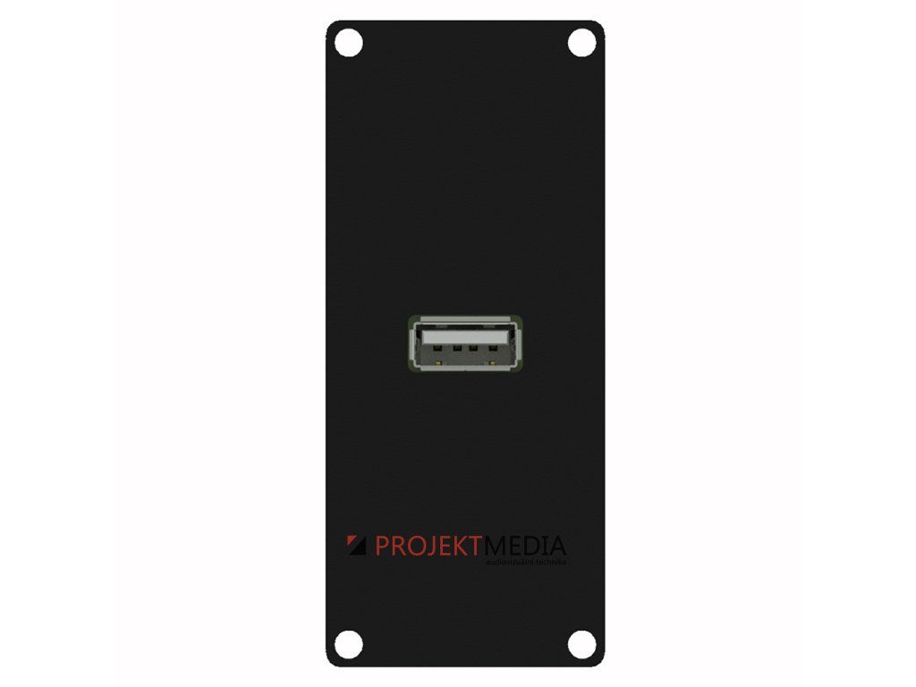 Konektorový modul systému CASY, vpředu 1x USB2.0A (samice), vzadu 1x 4pin svorkovnice, šířka 1 jednotka, materiál ocel tl. 1,5mm, barva černá