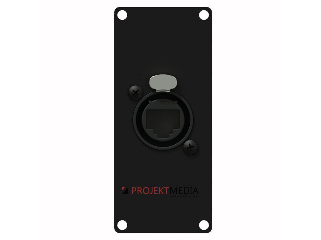 Konektorový modul systému CASY, vpředu 1x Neutrik EtherCON / RJ45, vzadu 1x RJ45, šířka 1 jednotka, materiál ocel tl. 1,5mm, barva černá