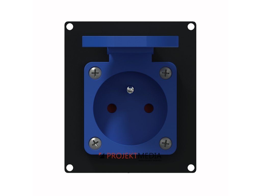 Konektorový modul CASY, vpředu 1x zásuvka 230VAC / standard CZ/SK (typ E) s krytím IP54, vzadu 1x GST18 na kabelu, šířka 2 jednotky, materiál ocel tl. 1,5mm, barva černá