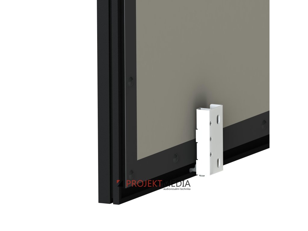 Stacionární plátno s inovativním hliníkovým rámem, montážní prvky skryté za rámem.