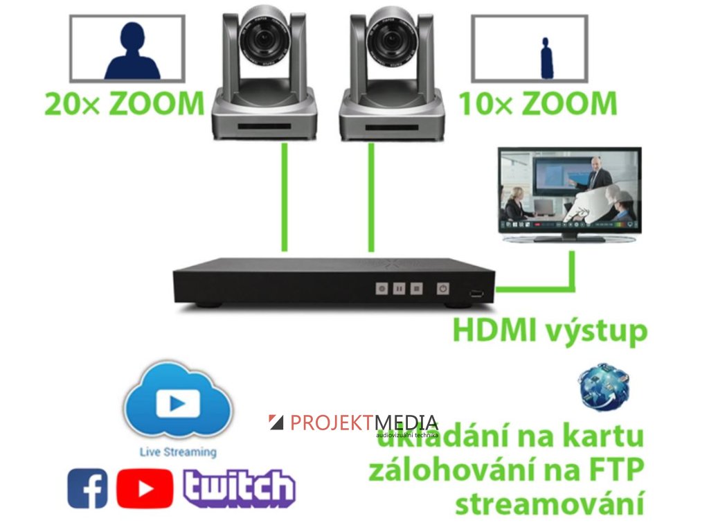 Sestava produktů pro živý streamovaný přenos bohoslužeb a jiných událostí, kterých se takto může nepřímo zůčastnit široké spektrum diváků. Probíhající událost je snímána dvěmi robotickými PTZ kamerami Minrray, které obsluha může vzdáleně polohovat pomocí IR ovladače, aplikace z tabletu nebo přes web rozhraní z PC (není součástí setu), a to jak manuálně, tak pomocí předem uložených záběrových pozic. Jedna kamera je vybavena objektivem s delším dosahem pro detailní záběry, druhá je s širším objektivem pro větší celky.