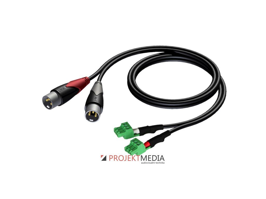 Propojovací kabel 2x Euroblock - 2x XLR(M), průřez 26 AWG, spirálové stínění, bezkyslíkatá měď, konektory Procab s pozlacenými kontakty, délka 1,5m