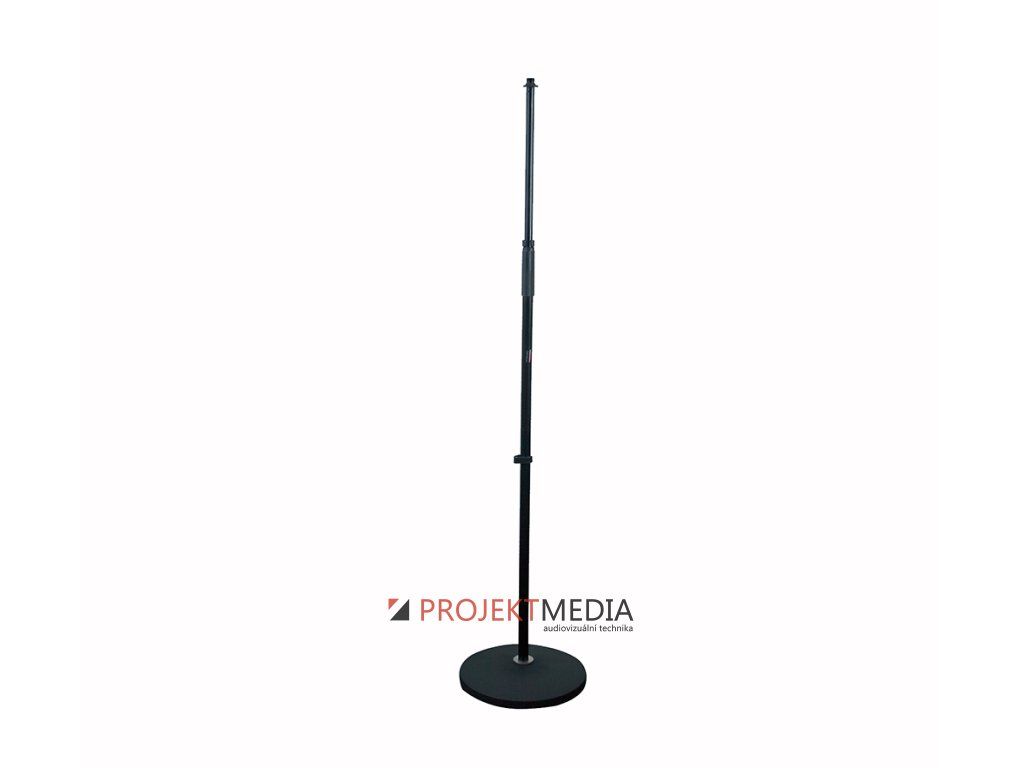 Mikrofonní stativ přímý, nastavitelná výška v rozsahu 830-1540mm, kruhová základna Ø 250mm. Součástí dodávky závitová redukce 5/8"-3/8" a klip pro uchycení kabelu. Materiál ocel, základna litina, hmotnost 3,2kg, barva černá.