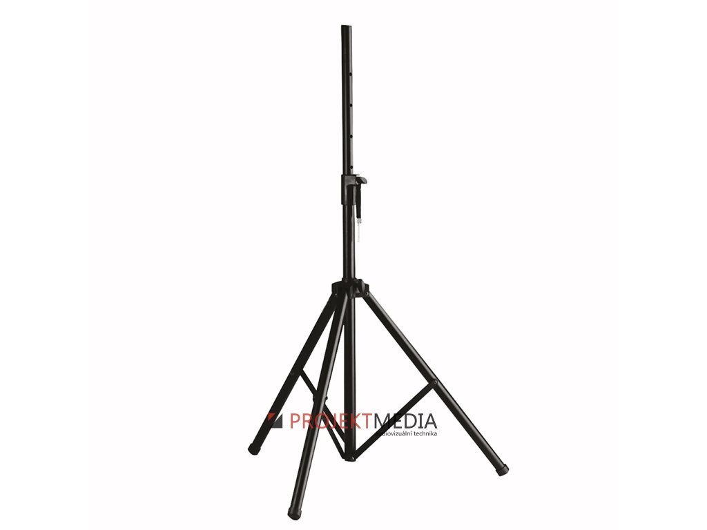 Reproduktorový stativ s pneumatickou pružinou, průměr tyče 35mm, nastavitelná výška v rozsahu 1100-1800mm, základna skládací trojnožka s max. průměrem 1520mm a délkou nohy 750mm. Max. nosnost 35kg. Materiál hliník, vzpěry nohou ocel, hmotnost 3,38kg, barva černá.