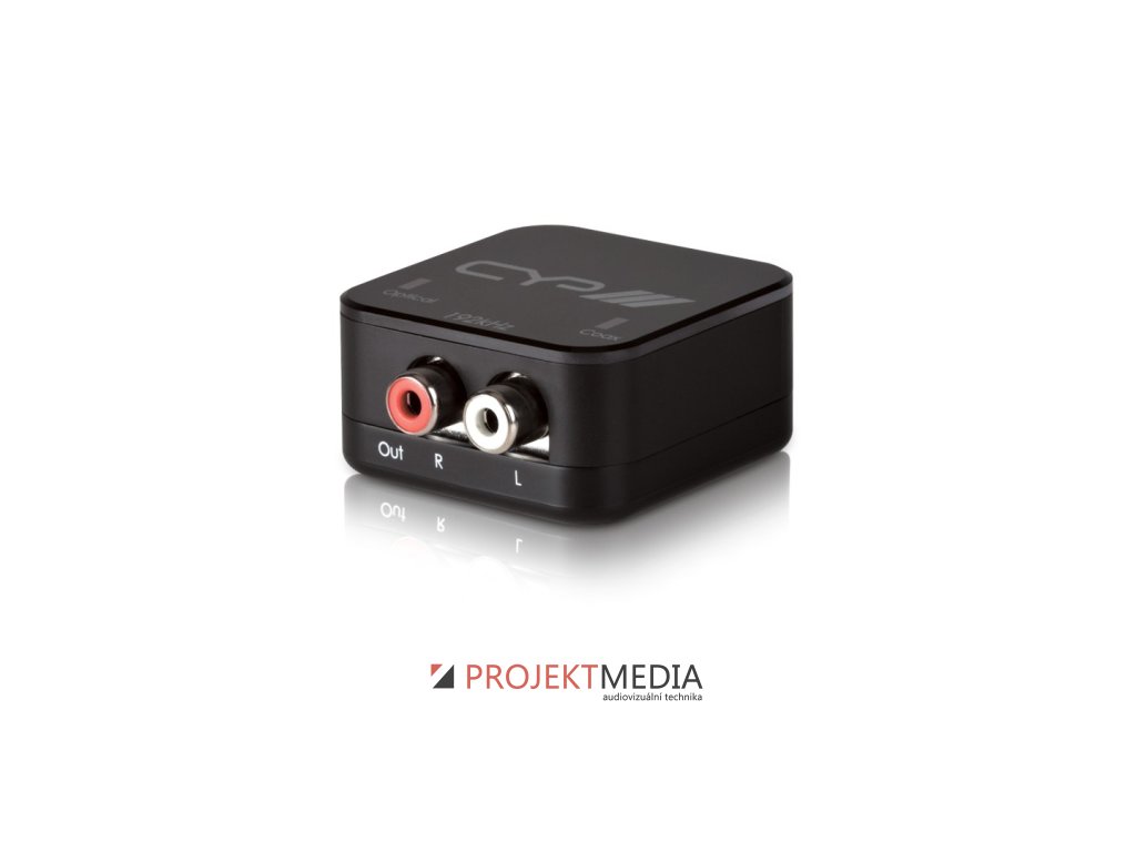 CYP AU-D3-192 je audio DA převodník z digitálního zvuku optický/koaxiální na analogový stereo zvuk 2x Cinch/RCA, vzorkovací frekvence až na 192 kHz pro lepší reprodukci zvuku, výrobce: CYP, model: AU-D3-192