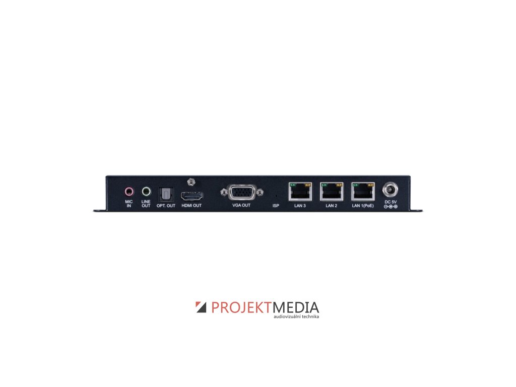 Video a audio může být přenášeno přes IP síť do vzdálenosti až 100 metrů přes síťový přepínač. Vzdálenost přenosu může být rozšířena až do 100 metrů mezi síťovými přepínači a podporuje Gigabitové sítě.
