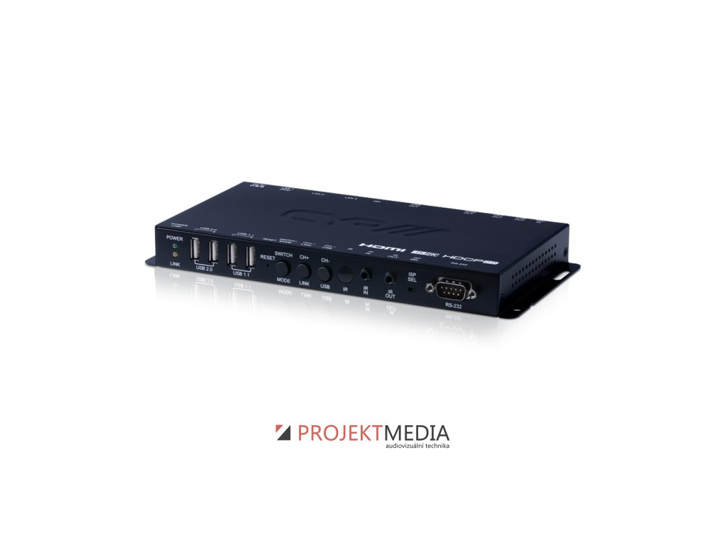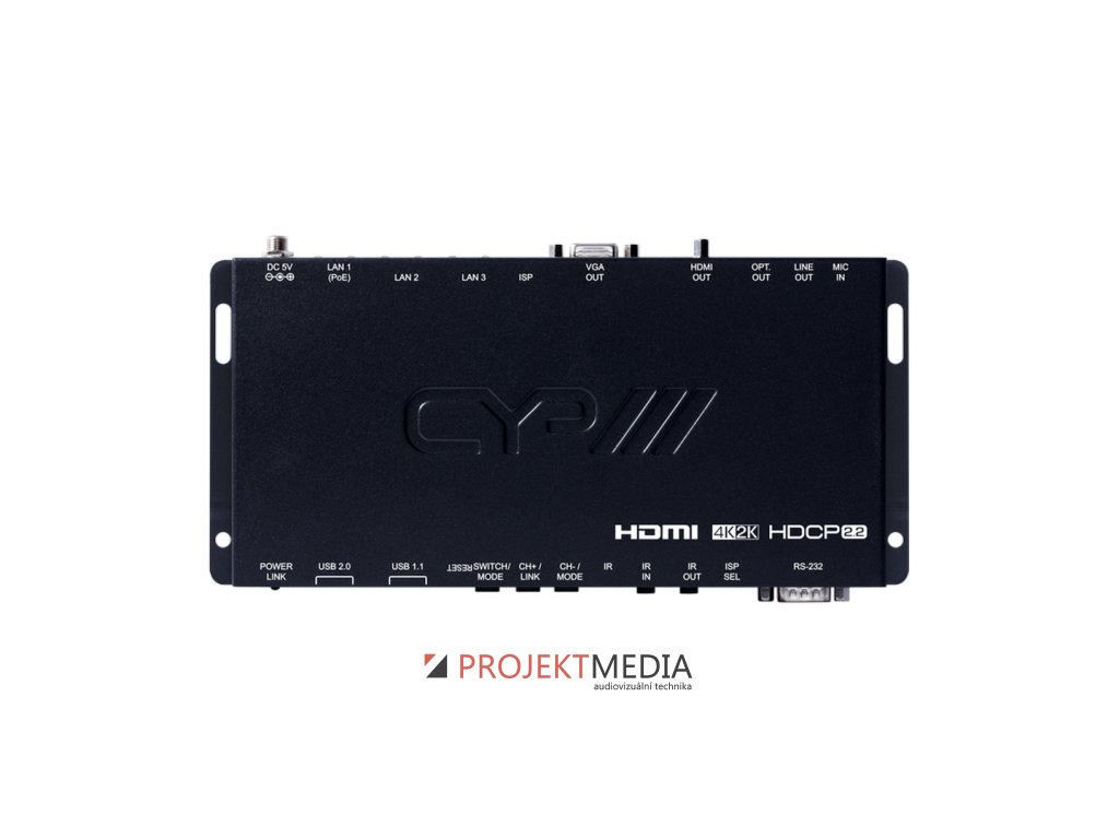 IP-7000RX je HDMI, VGA 4K přijímač, který slouží pro video přenos po IP až do vzdálenosti 100 metrů, přenos HD audio formátů (LPCM, Dolby® Digital a DTS®), HDCP 2.2, 2 x USB 1.1 a 2 x USB 2.0 porty, výrobce: CYP, model: IP-7000RX