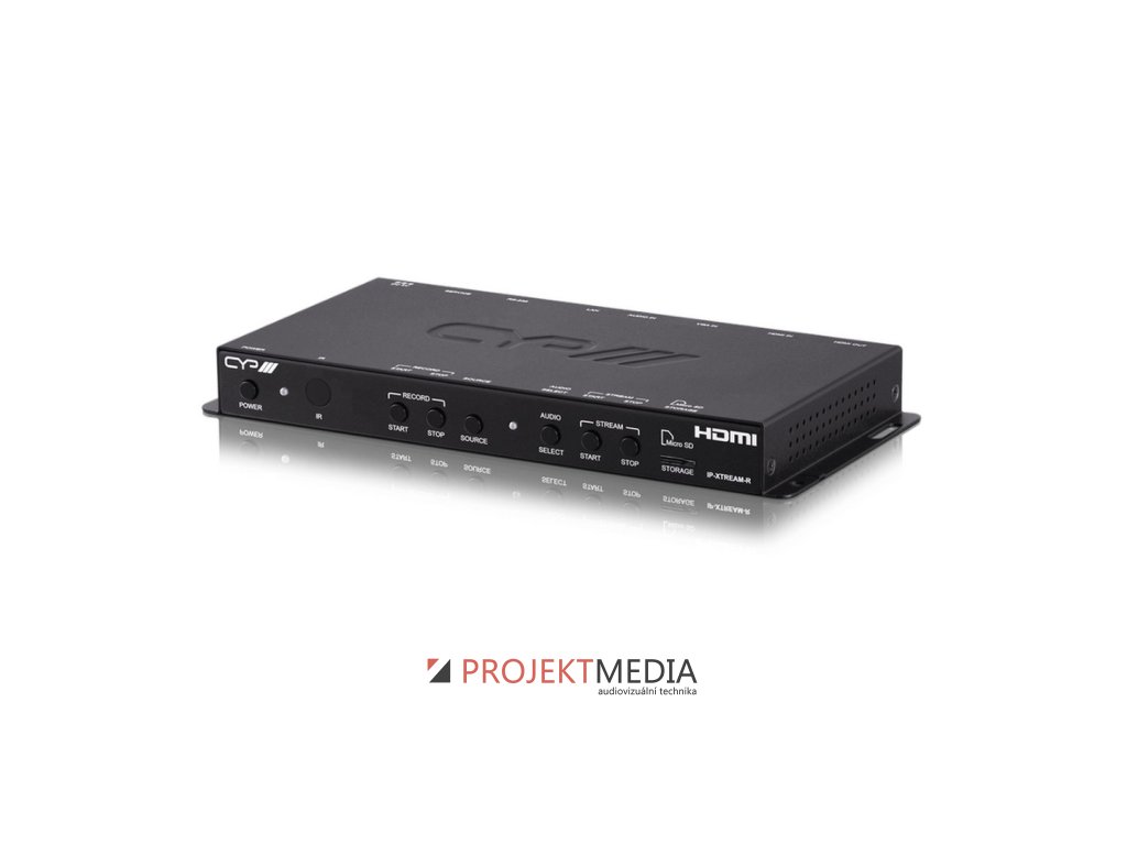 CYP IP-XTREAM-R je systém umožňující online vysílání živého videa s místním úložištěm a se snadným a jednoduchým procesem, rozlišení videa až do 4K, streamované video lze nahrávat lokálně (přes SD kartu) nebo na lokální síťovou jednotku, Výrobce: CYP, model: IP-XTREAM-R