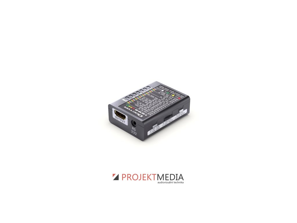 HDFury HDF0130 "Dr. HDMI 4K" je HDMI EDID emulátor, který řeší problémy s handshake a kompatibilitou až po HDMI 2.0b. Umožňuje nastavení zdroje, zlepšuje integritu signálu a podporuje aktivní HDMI kabely. Má předdefinované i programovatelné EDID banky, funkci učení EDID a režim pro HTPC, ideální pro integrátory a zlepšení signálu.