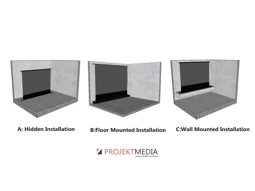 - Speciální projekční povrch obsorbující 93% okolního světla, 0,9gain, 170° pozorovací úhel.