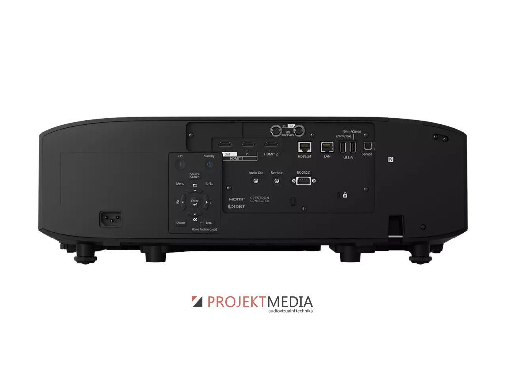 Rozhraní: USB 2.0-A (2x), USB 2.0 typ B (pouze servis), RS-232C, Ethernetové rozhraní (100 Base-TX / 10 Base-T), bezdrátová síť LAN IEEE 802.11a/b/g/n (volitelně), HDMI vstup (2x), HDMI výstup, HDBaseT, audio výstup, stereofonní konektor mini-jack, Technologie komunikace v blízkém okolí (NFC), USB content playback, Remote, Vstup 12G SDI, Výstup 12G SDI