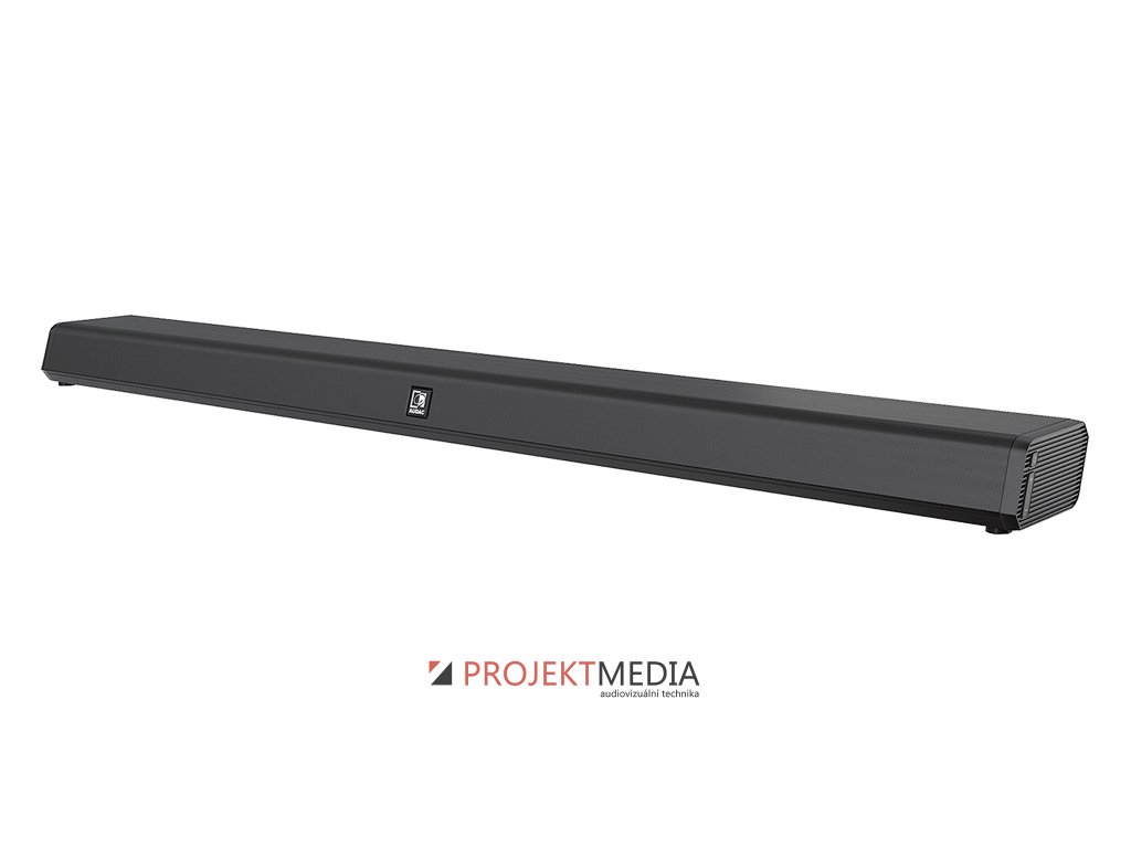 Aktivní třípásmová stereofonní reprosoustava typu Soundbar pro AV instalace a ozvučení k displejům, projekčním plátnům nebo interaktivním tabulím. Bas-reflexová konstrukce s osazením 2x2,5" + 2x2" + 2x1,5", digitální Class-D zesilovače o celkovém výkonu 60W RMS, max. SPL 90dB @ 1m, frekvenční rozsah 40Hz-20kHz @ ±3dB, integrovaný DSP procesor WaveSelect s volitelnými presety pro přednastavené provozní režimy "Prezentace", "Hudba", "Video". Digitální vstupy HDMI (ARC) a SPDIF (optický + koaxiální), analogový stereo vstup Jack 3,5mm, konektivita Bluetooth v4.2 s možností nastavení unikátního ID pro instalace s více reprosoustavami IMEO, rozhraní USB pro přehrávání hudby ve formátech WAV, FLAC, MP3 z externích paměťových médií USB. Automatický přechod do úsporného Standby režimu se spotřebou energie pouze 0,5W po 15 minutách bez vstupního signálu, volitelný hotelový režim. Součástí dodávky IR dálkové ovládání a montážní konzola s integrovaným vedením přívodních kabelů. Možnost instalace na držáky standardu VESA200 až VESA700 pomocí volitelného úchytu MBK440 (zvl. přísl.). Barva černá.