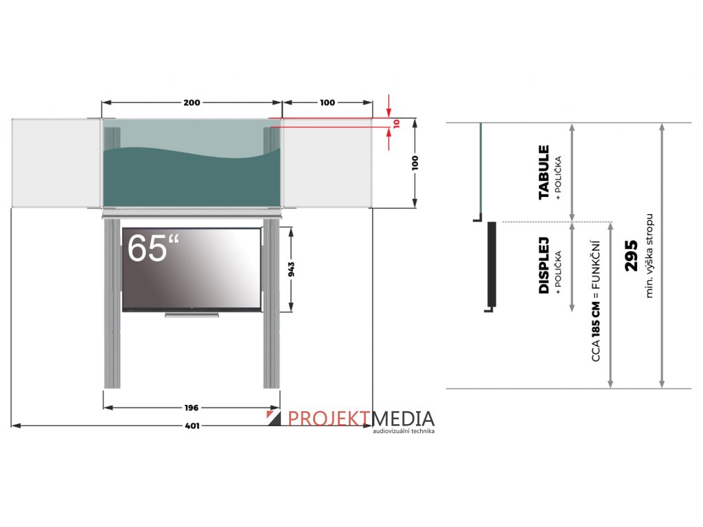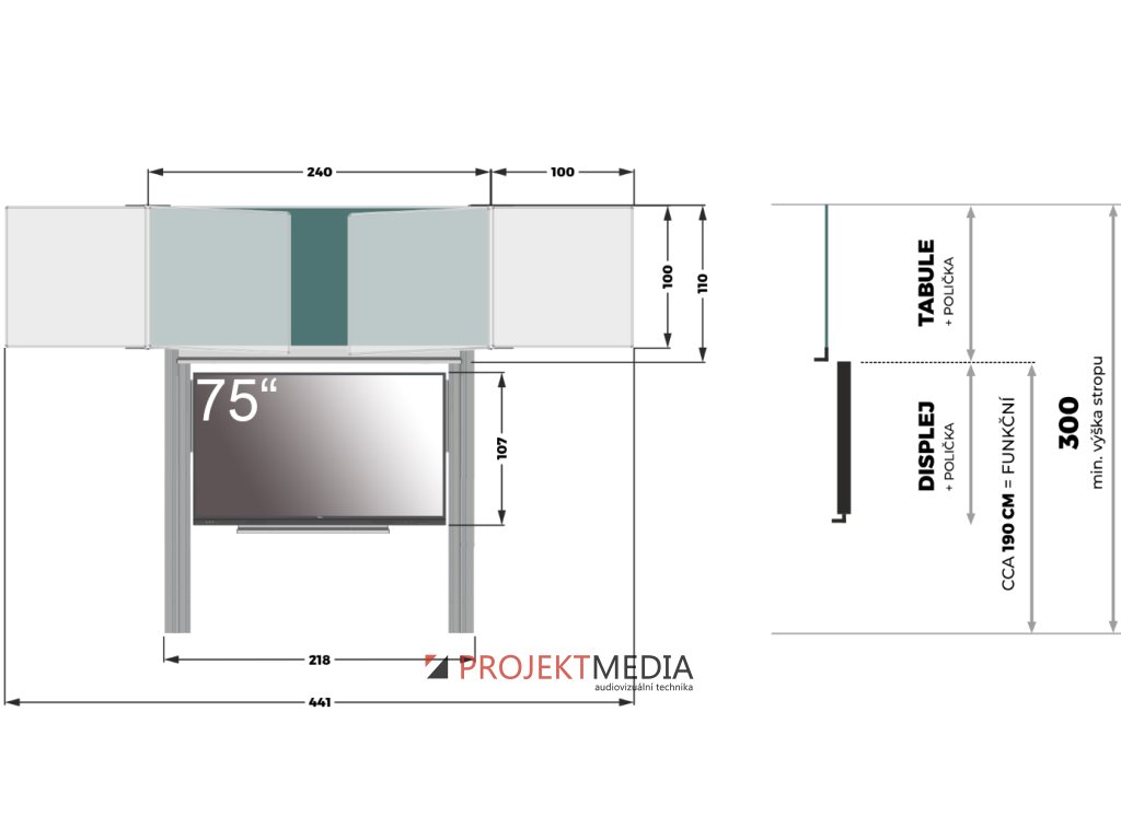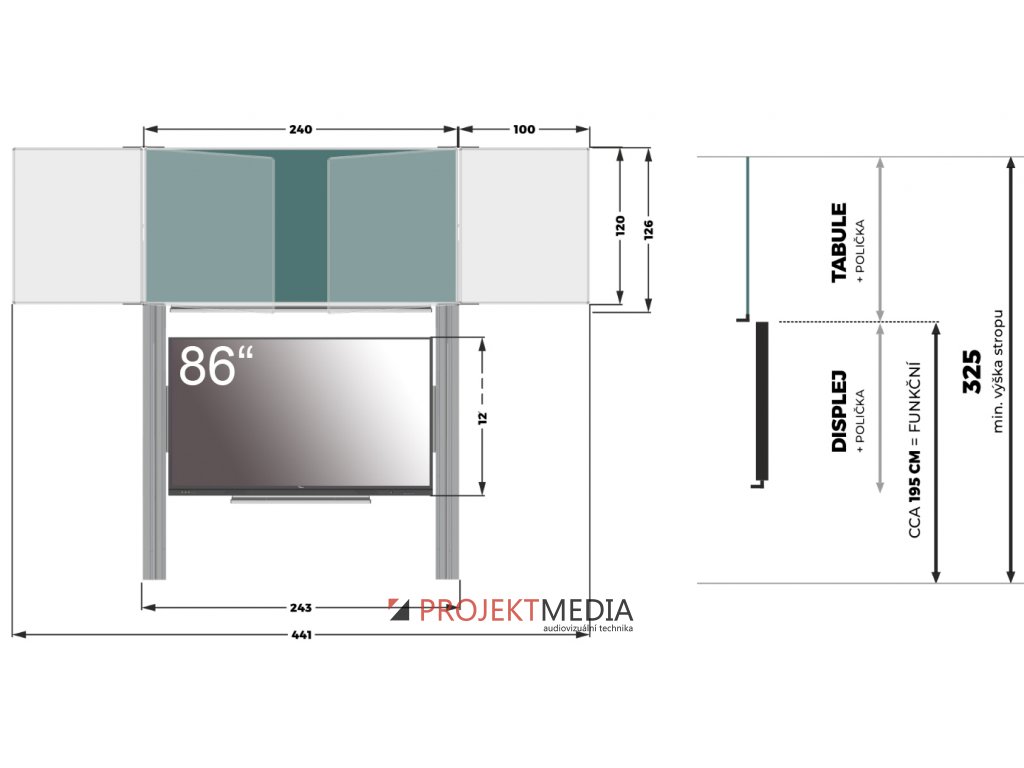 Interaktivní sestava na zvedacím systému PYLON AL - LCD 65", 75", 86" s přední krycí tabulí a křídly