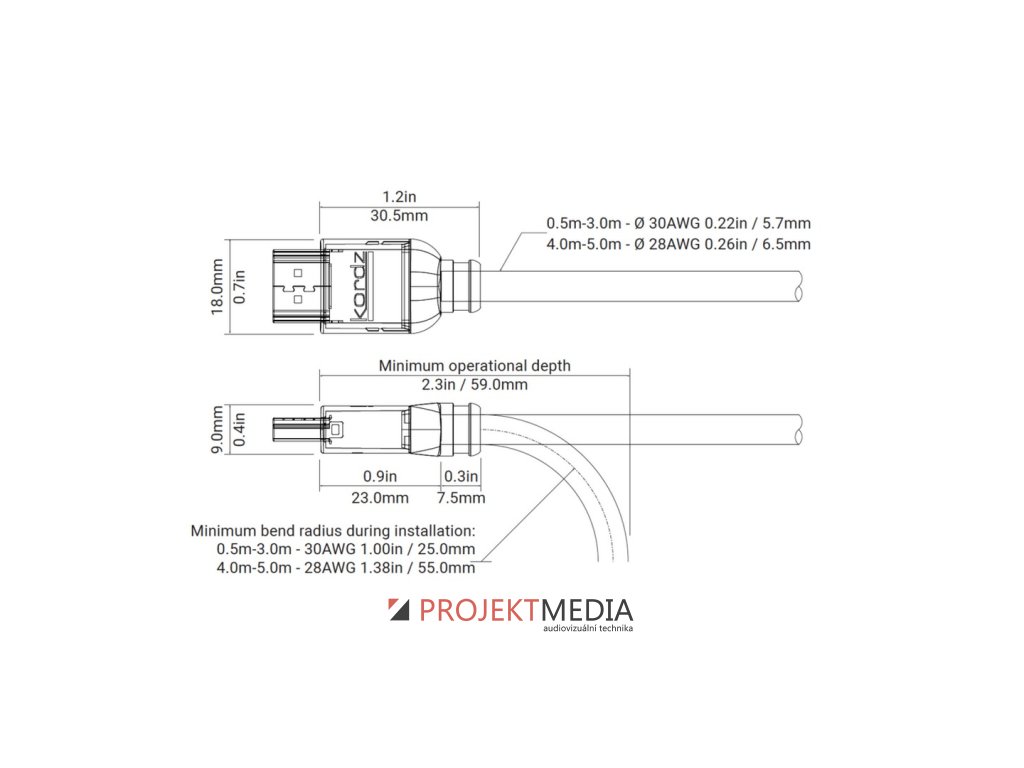 Nová řada Kordz PRO3 HDMI kabelů je navržena pro usnadnění instalací profesionálním AV integrátorům. V kombinaci lehké konstrukce, pozlaceného 1kg HDMI konektoru a vysoce flexibilního ohnivzdorného kabelu bylo dosaženo nejvyšší možné kvality HDMI kabelu. Tato nejnovější řada PRO HDMI kabelů také snižuje stopu konektoru na 65% oproti předchozí generaci a výkon byl zvýšen na plnou podporu 18Gb/s ve všech dostupných délkách. Dostupné v délkách od 0.5m do 5m, s použitím nejkvalitnějších materiálů a efektivnímu způsobu výroby je řada PRO3 HDMI kabelů vaší nejspolehlivější volbou co se týče HDMI připojení.