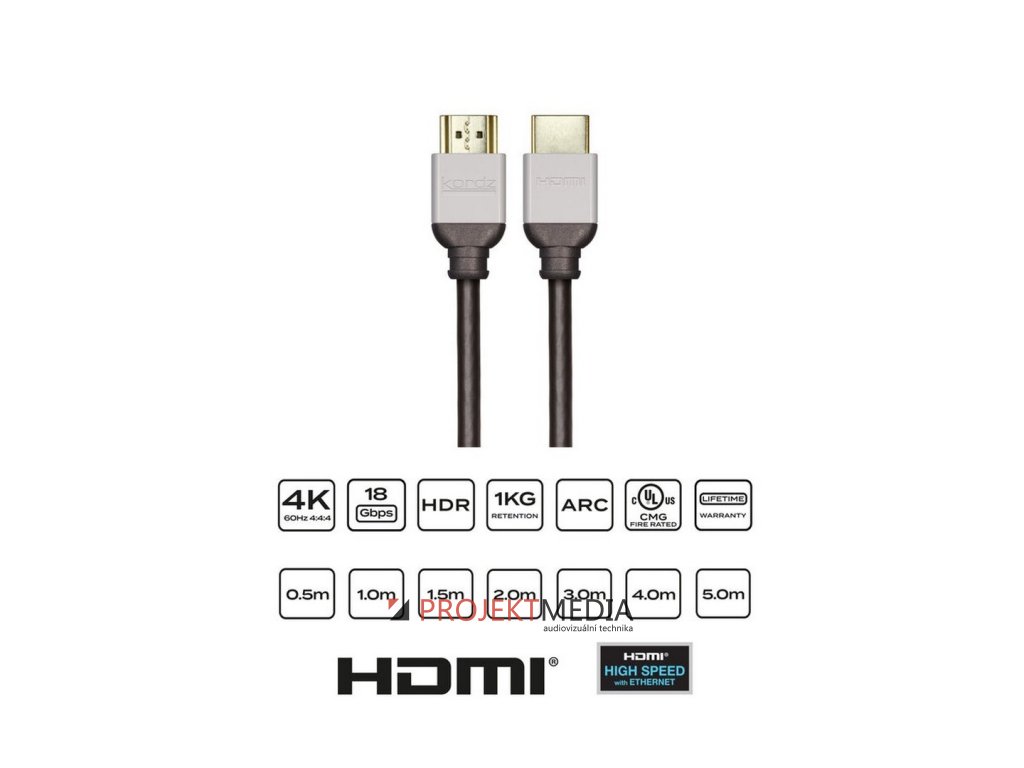 Kordz PRO3 4K HDMI kabel nejnovější řady PRO3 s podporou 2160p (4K/60 4:4:4) / 4320p (8K/30 4:2:0) ve všech délkách, licence HDMI 2.0, délka 2 m, výrobce: Kordz, model: K26016-0200-CH