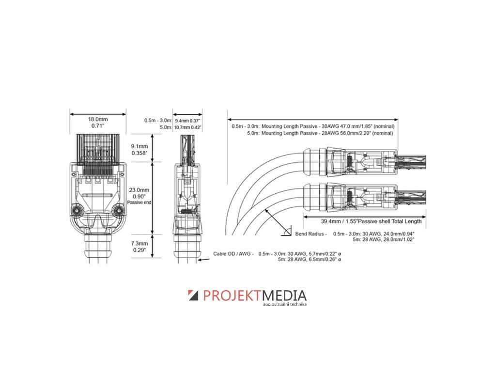 Kordz pasivní HDMI kabel řady PRS3 je vybaven jedinečným HDMI konektorem a je tak navržen pro minimalizování výpadků konektoru - není vhodné pro opakováné zapojování a vypojování.