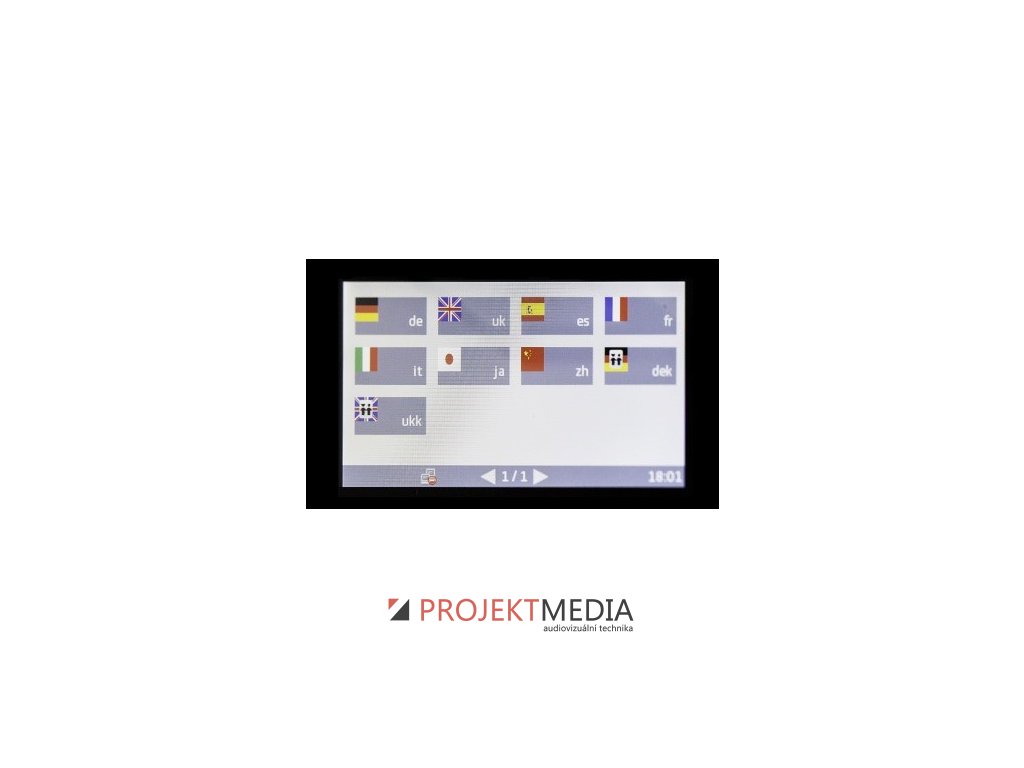 - Výběr jazyka pro danou prohlídku se aktivuje pomocí vestavěné dotykové obrazovky.
