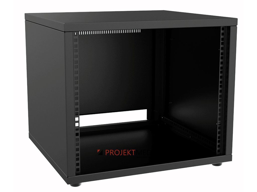 Rozvaděč 19" 9U, 1 pár fixních vertikálních lišt, odnímatelná zadní stěna s otvory pro přívod kabelů ve spodní části a pro ventilaci v horní části. Materiál ocelový plech tl. 1,5mm, rozebíratelný, dodávka v rozloženém stavu. Rozměry (ŠxVxH) 540x453(471)x500mm, využitelná hloubka 475mm, hmotnost 17,7kg, barva černá.