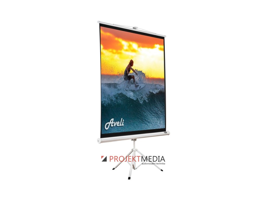 Plátno AVELI na mobilní trojnožce je řešením pro velkoplošný obraz při nedostatku místa nebo při požadavku na mobilitu. Povrch bílého plátna je matný a poskytuje vysoce ostrý obraz, umožňuje velmi kvalitní pohled pro jakkoli vzdálené posluchače. Přizpůsobení aktuálním požadavkům poskytuje nastavitelná výška a horní rameno s možností náklonu. Stylové černé orámování zvyšuje kontrast obrazu a dodává profesionální image.