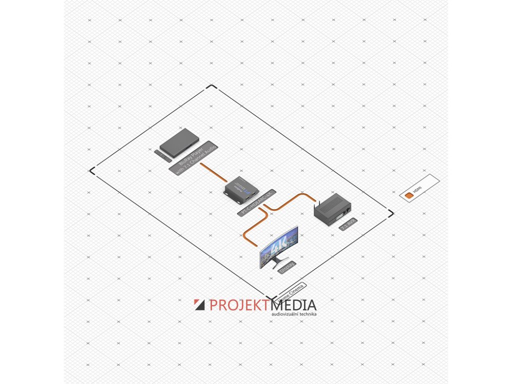 2. 4K zdroj je připojen přímo do vstupu PT-C-HDEARC-4K. Veškerý signál je přenášen do připojené televize a zároveň přenáší audio jako kompatibilní signál do AV přijímače.